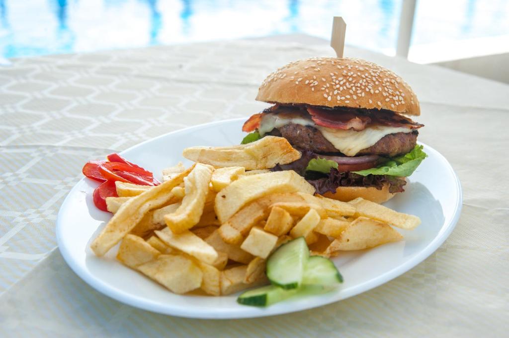 For lunchtime you can choose to sit at your swimming pool chair and order a meal at the pool bar. You can also sit down in our lovely restaurant. On the menu you will find some tasty light meals.